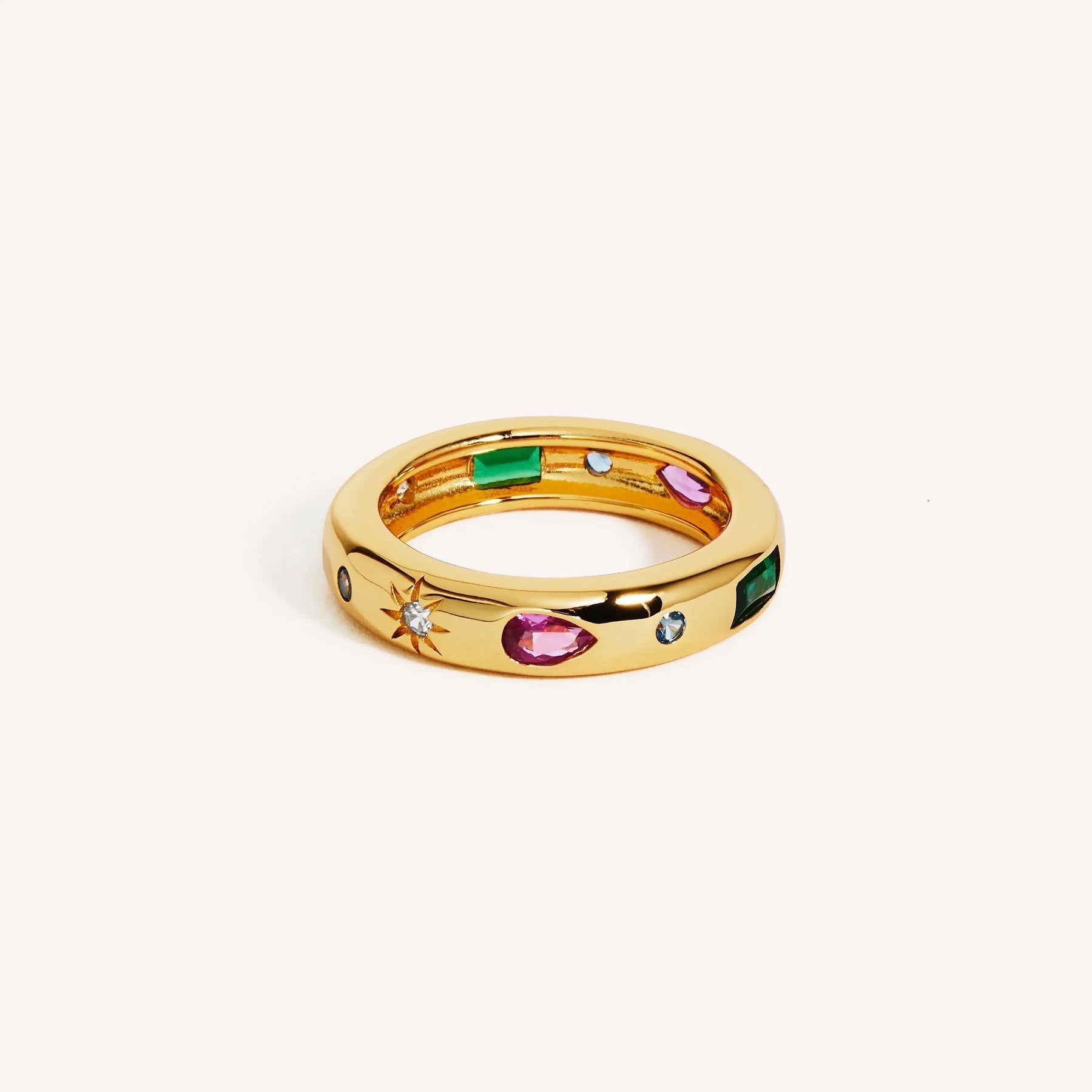 Wear solo as a luminous statement or pair with slim silver bands to echo the celestial motif.