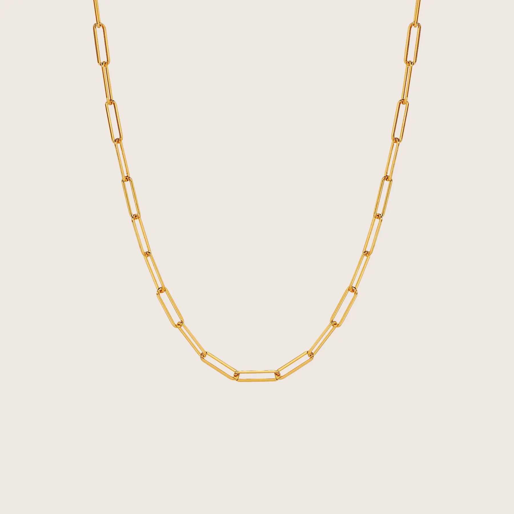 Demi-fine essential - sleek paperclip links that balance modern minimalism with timeless appeal.