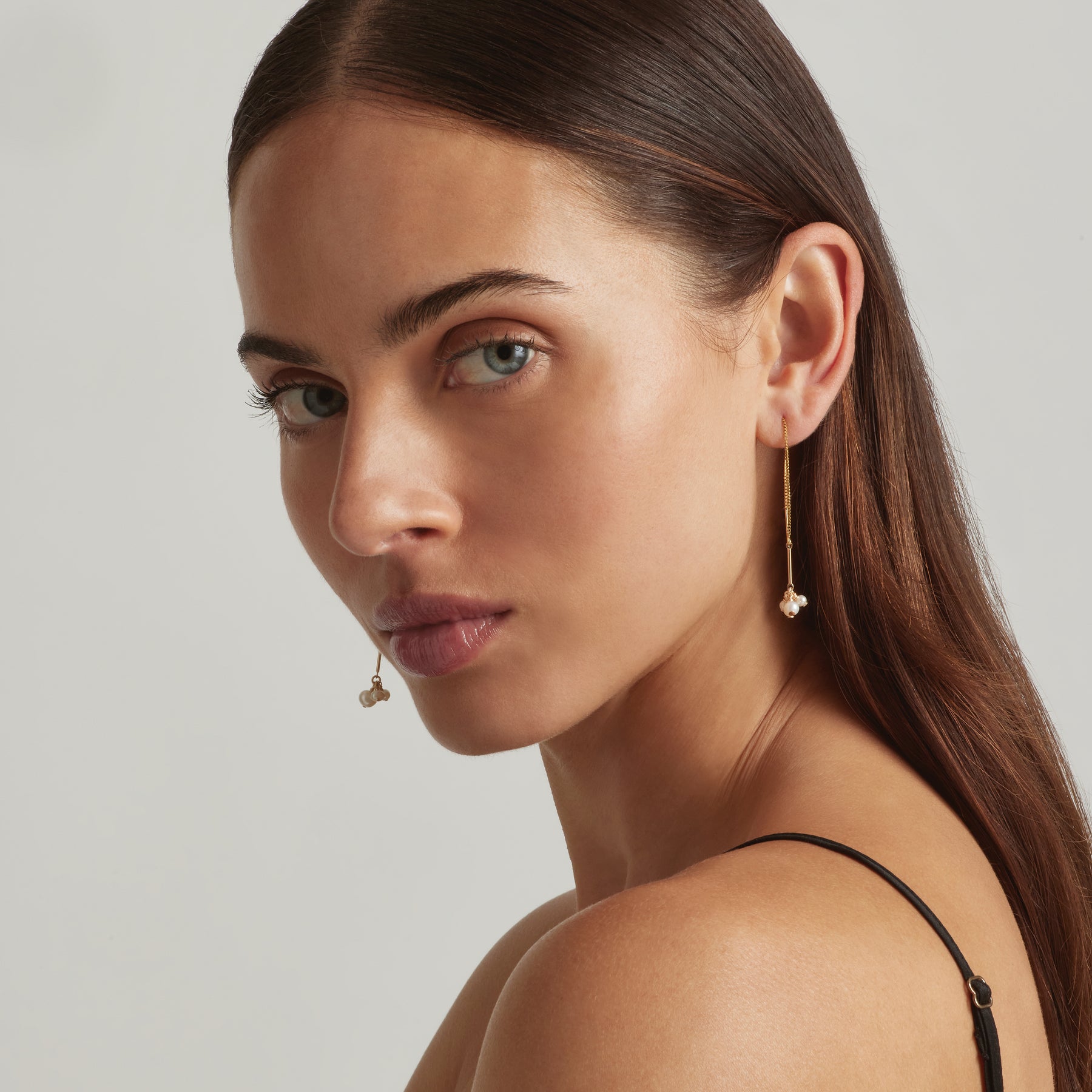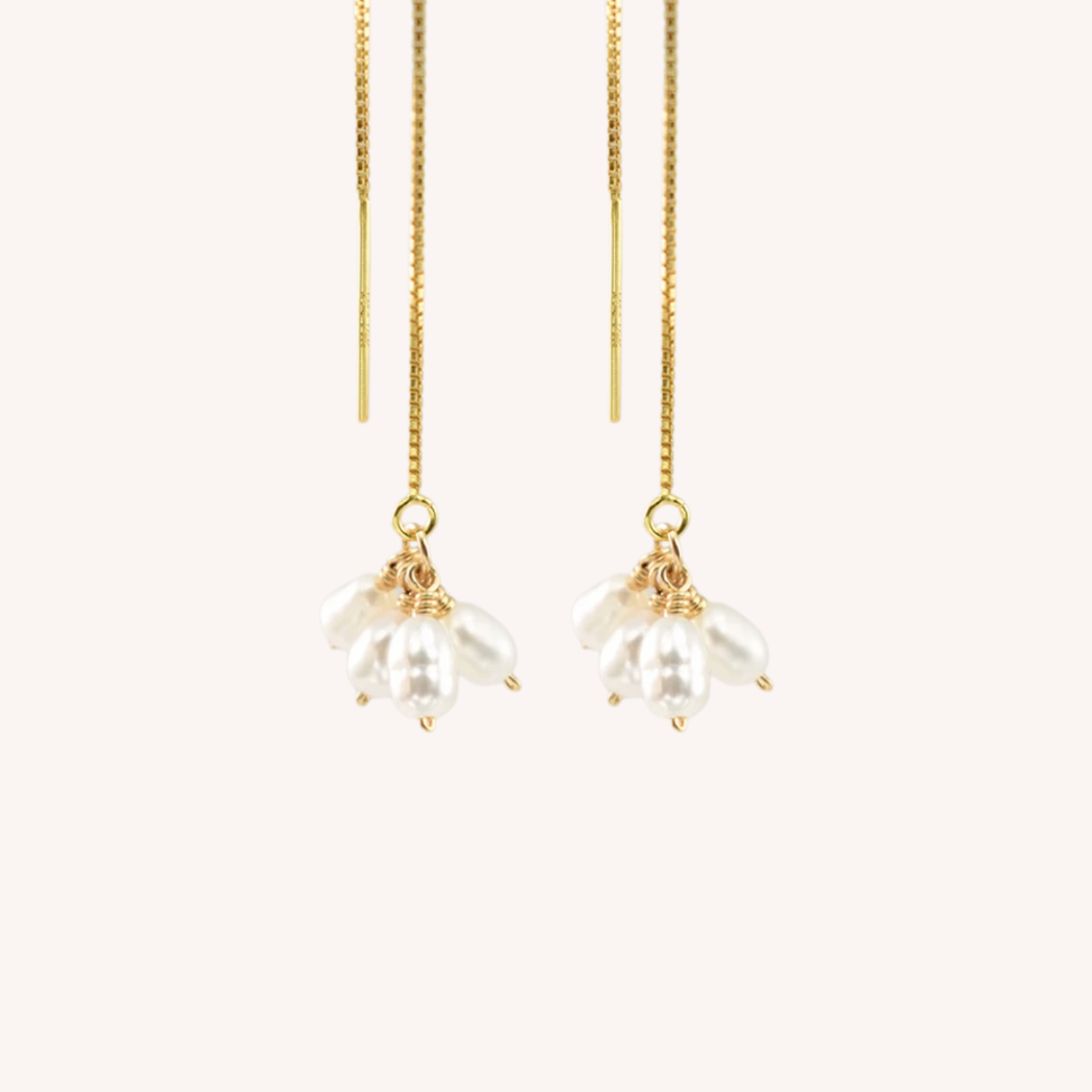 Delicate thread drops with freshwater pearls that sway like windchimes, bringing effortless elegance to every look.