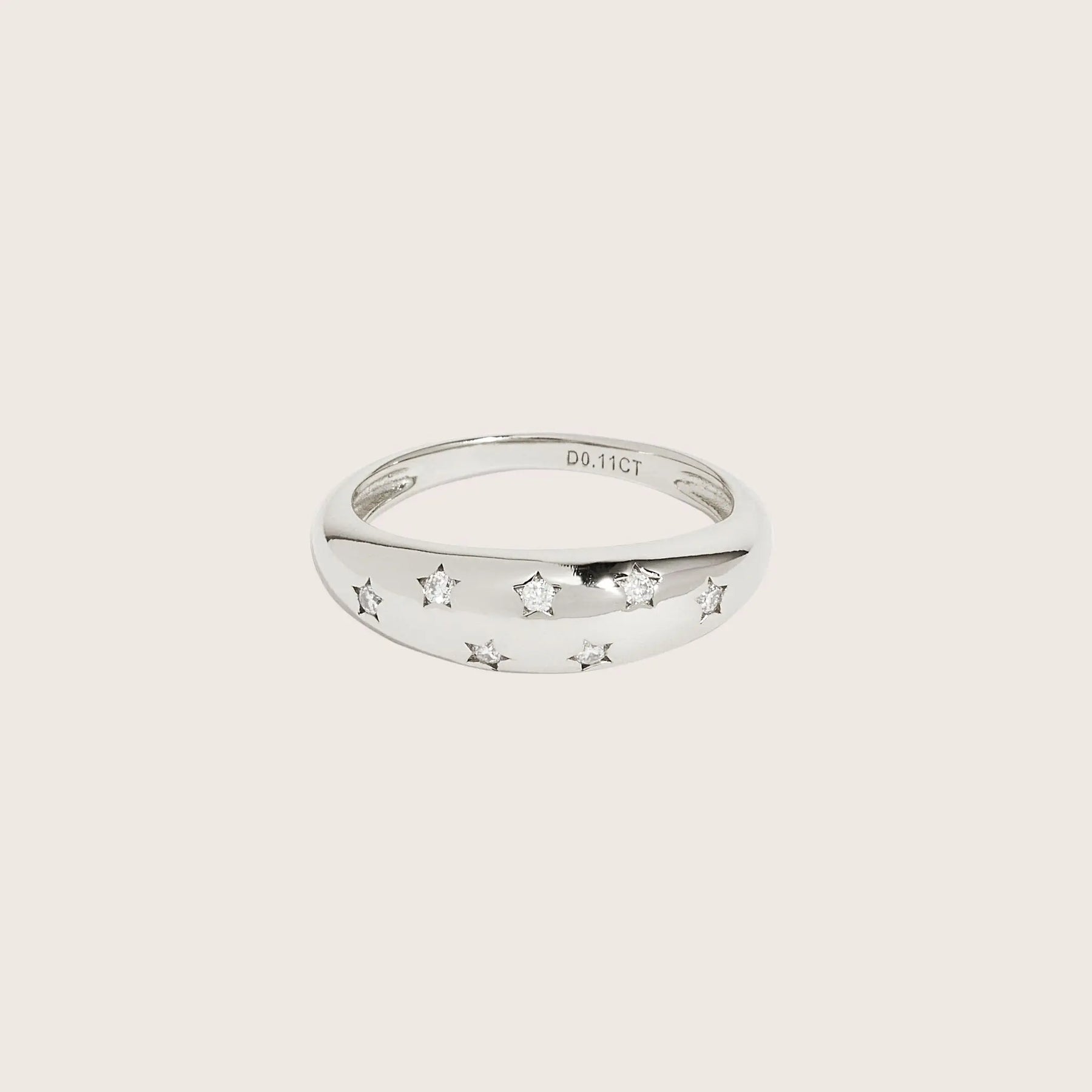 A ring of twinkling moissanite “stars” - a symbol of dreams, guidance, and reaching for the stars.