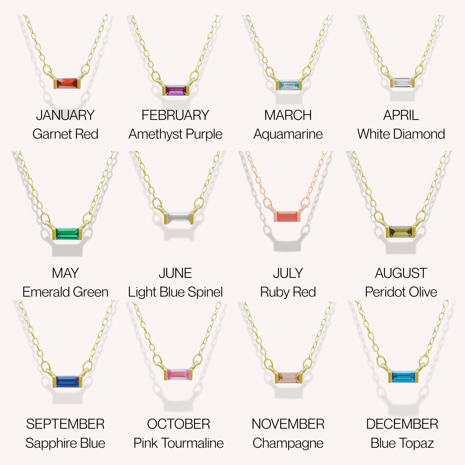 Necklaces with gemstones corresponding to each month, displayed against a white background.